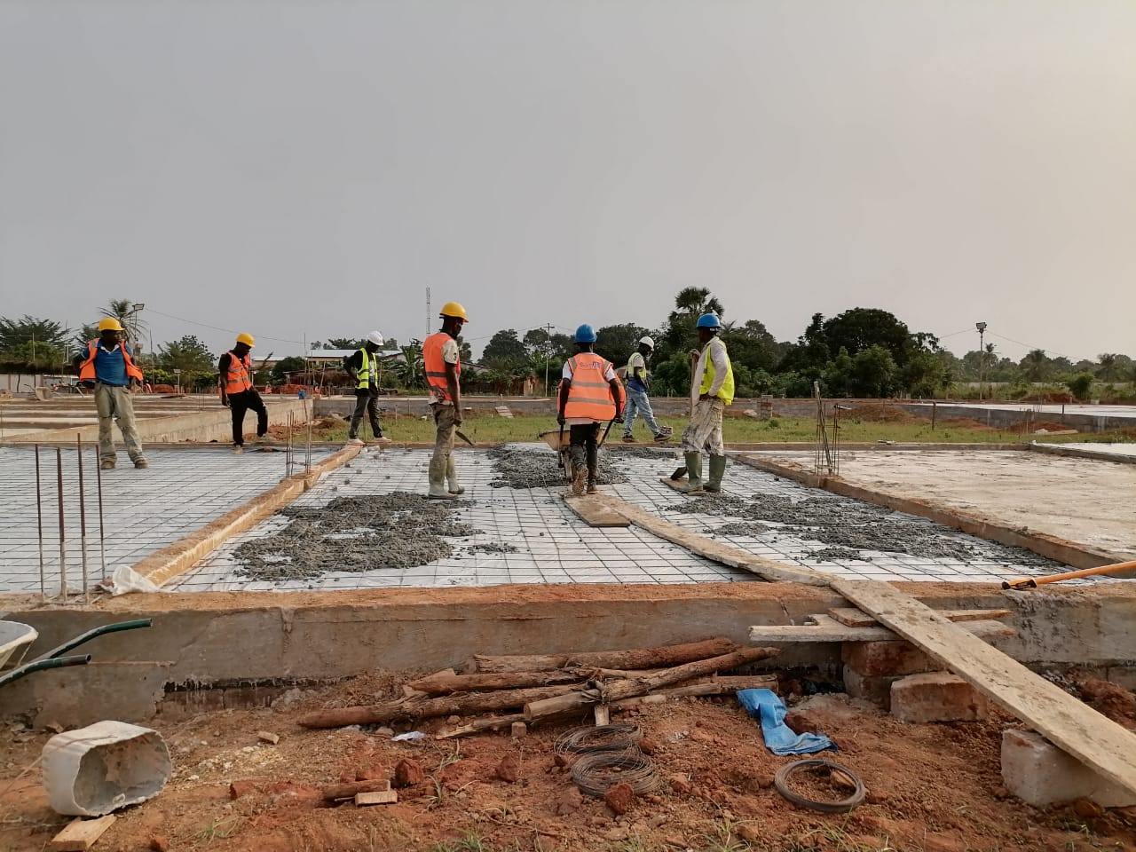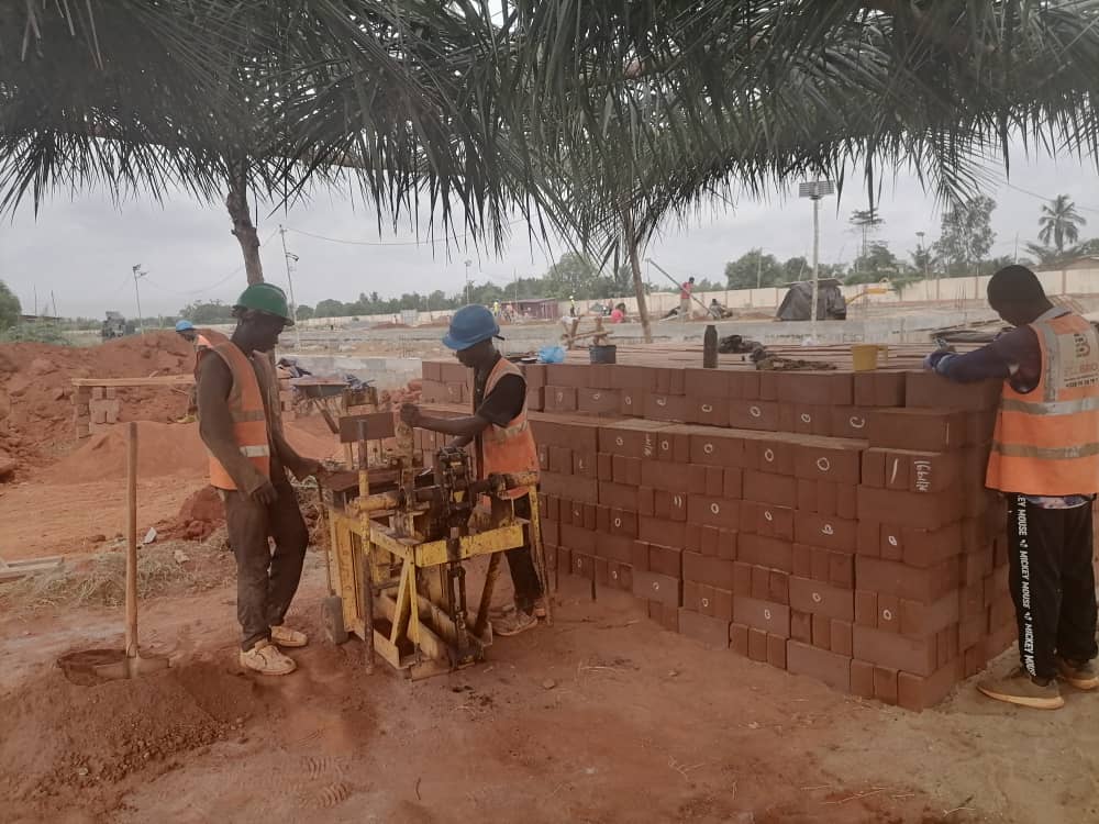 Der Architekt des neuen Spitals führte Mathis und Charlotte durch die Baustelle des neuen Spitals. Er zeigte und erklärte die Produktion und das grosse Lager der handgefertigten Ziegelsteine. Aus Sand und etwas Zement und Wasser werden diese von drei Arbeitern in einer handbetriebenen Formmaschine im Akkord hergestellt. Die Fundamente des neuen Spitals sind fast vollständig errichtet und das Grundwasser mit einer tiefen Bohrung gefasst. In den kommenden Wochen werden die Ziegelwände hochgezogen. Es gibt auf der Baustelle fast keine Maschinen, keine Bagger und keinen Kran, dafür viele kräftige Arbeiter aus der Gegend, die so einen Verdienst für sich und ihre Familien haben. Es hat uns erstaunt, welche Beachtung der Arbeitssicherheit gilt. Alle Arbeiter und Besucher tragen Helme und Leuchtwesten. Man kann es sich als Besucher kaum vorstellen, aber immer wieder wird versichert, dass das neue Spital im Winter 2026 bezugsbereit sein wird.