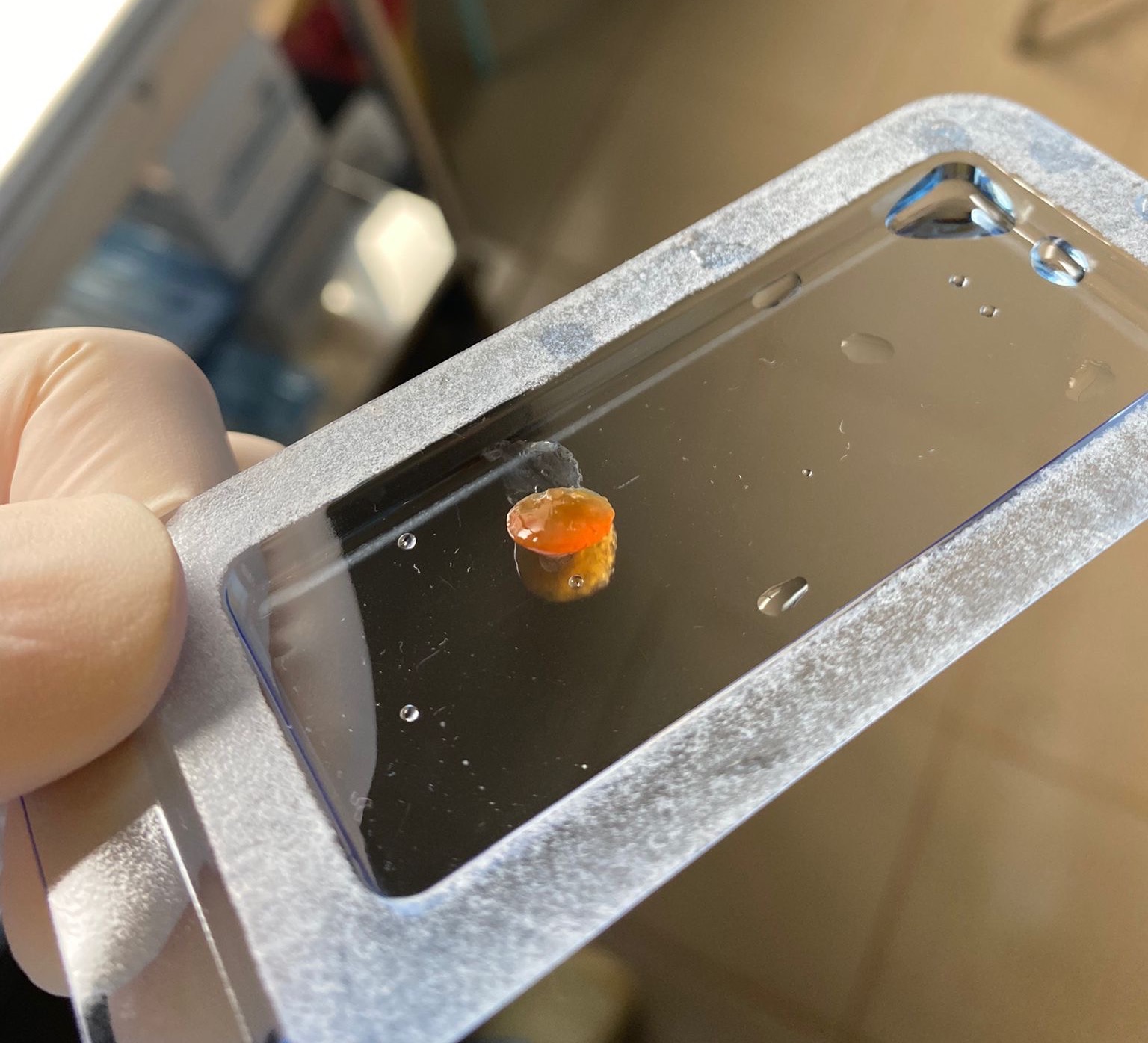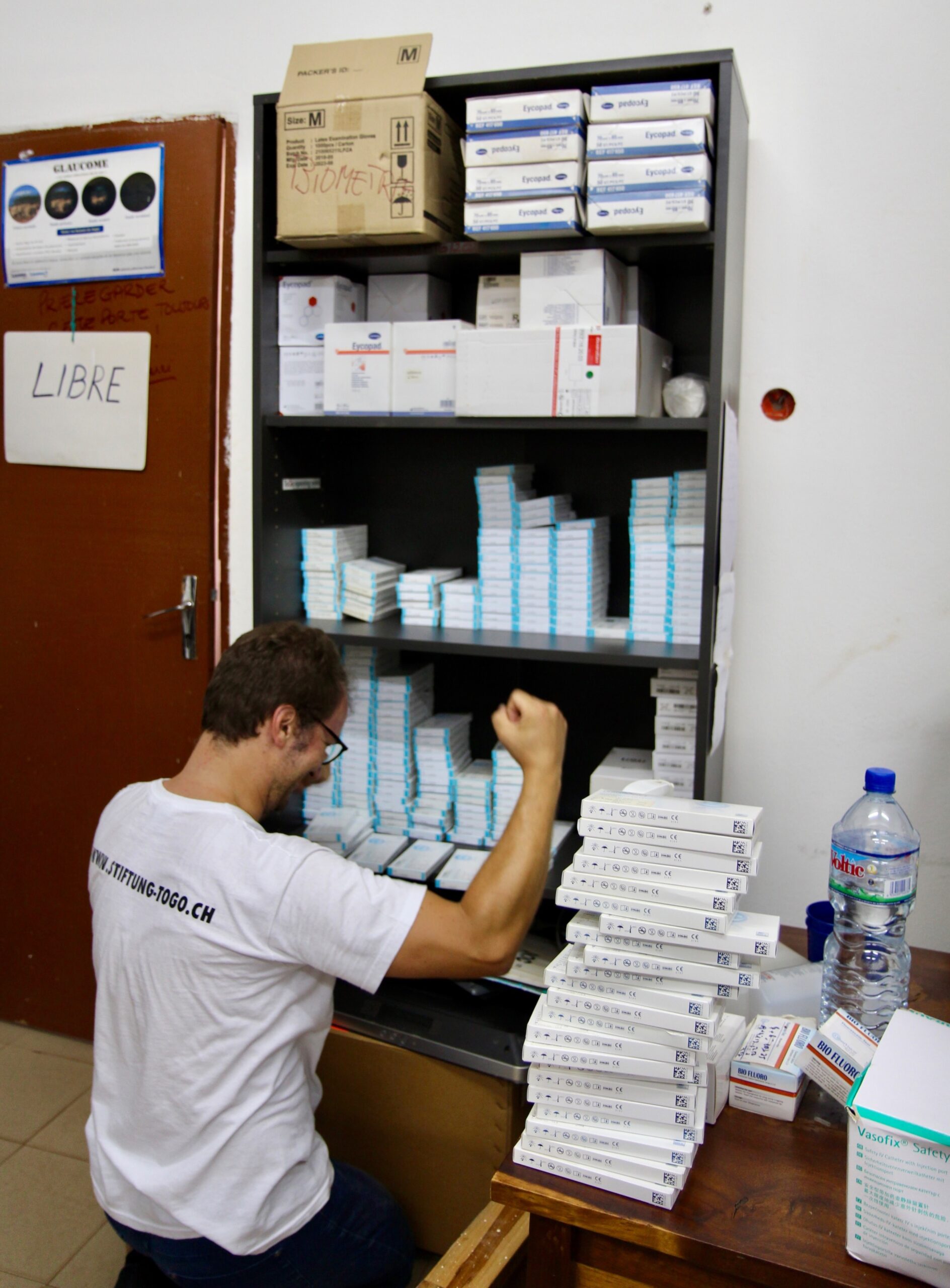 Sie erklärt mir, wie sie die Patienten genau auf die OP vorbereitet: Sie bekommen Tropfen. Zwei verschiedene: für die Betäubung des Auges und zur Vorbeugung von möglichen Entzündungen oder Infektionen während der OP. Dann kriegen die Patienten noch körnchengrosse Tabletten ins Auge, um die Pupille zu weiten, sodass sie vorerst auch nicht mehr auf Licht reagiert. Hannah zeigt mir auf ihrem Smartphone das Bild einer Linse: Ein Glibber. Irgendwie habe ich mir da so was Hartes vorgestellt. In der Schweiz wird bei einer Grauen-Star-OP die Linse zertrümmert, abgesaugt und dann durch eine künstliche eingesetzt. Nach neuster Technologie. Die das OP-Team auch hier nach Togo gebracht hat. «Wir arbeiten hier mit den neusten Geräten, vom Standard ist alles so, wie bei uns in der Schweiz», ergänzt Armin. Das einzige Problem ist der Platzmangel. Ein zweiter OP-Raum steht zwar bereit, wie ich heute entdeckt habe, es fehlen aber noch Geräte, und auch ein Anästhesist und zwei OP-Schwestern.