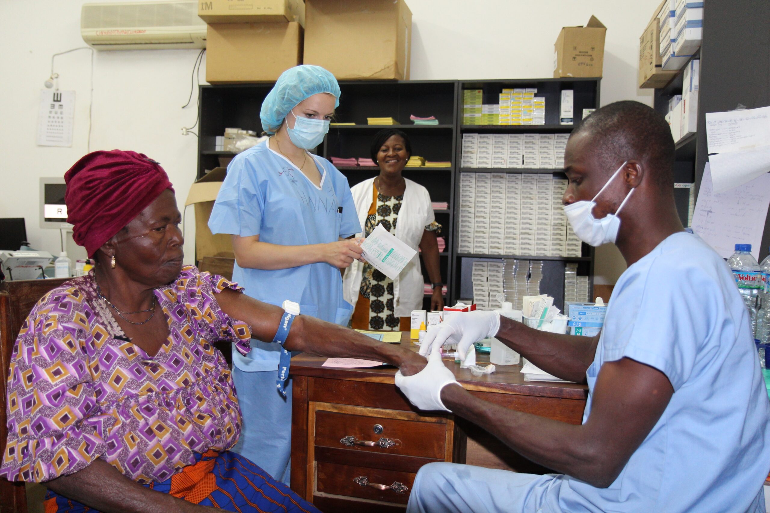 Im Vorbereitungsraum läuft Gospelmusik. Der Augentechniker Ernest schaukelt auf seinem Stuhl dazu im Takt. Hannah gefällt das und sie meint, sie würde die auch ganz gern auf ihrem Arbeitsplatz in Deutschland abspielen lassen.
