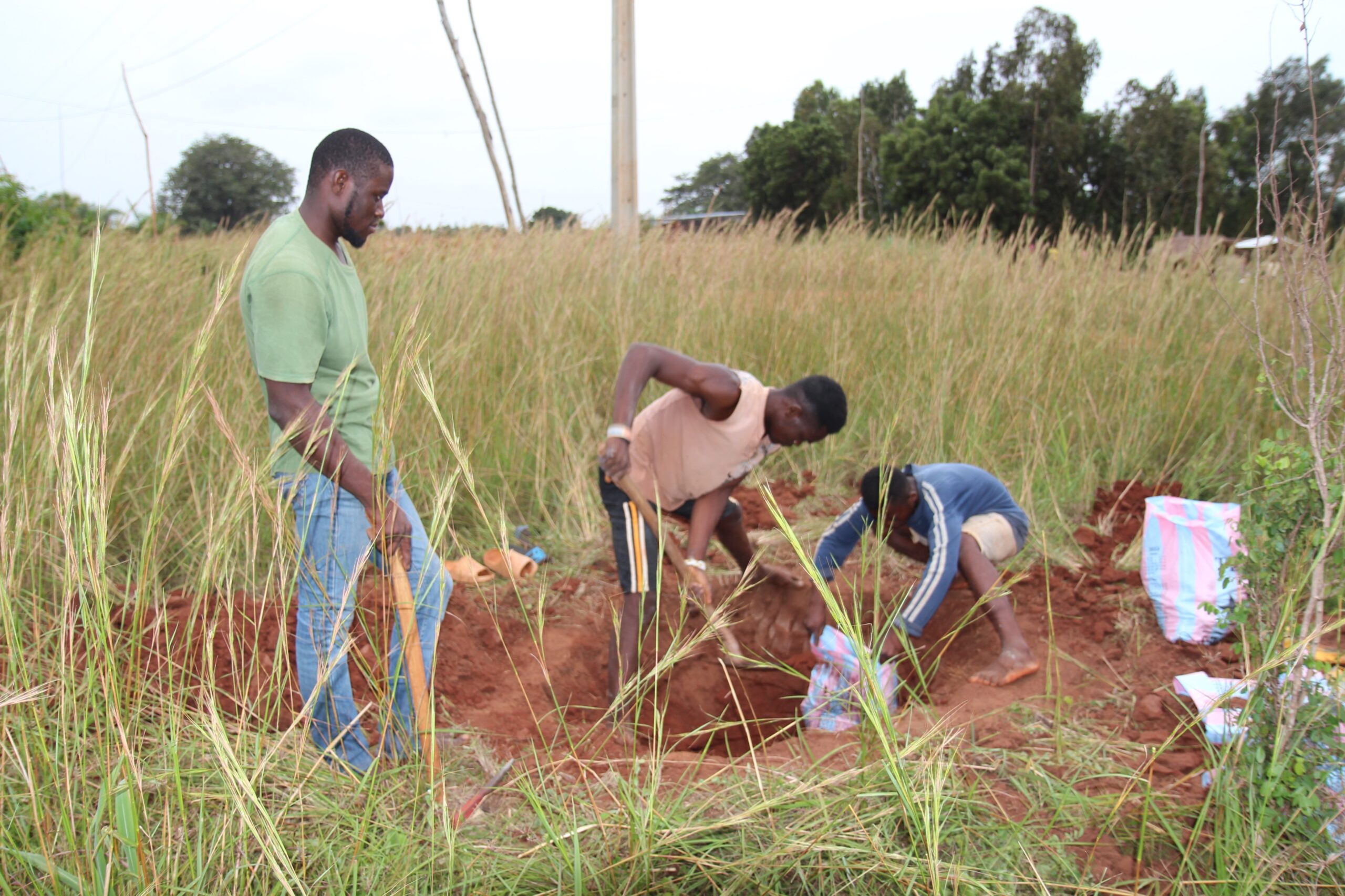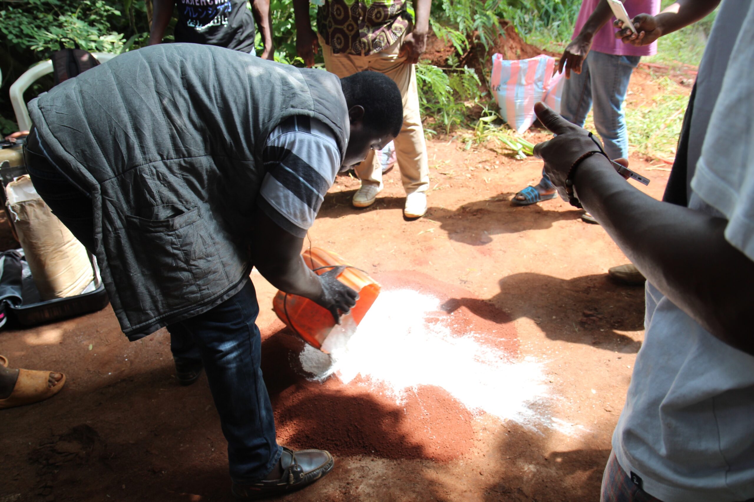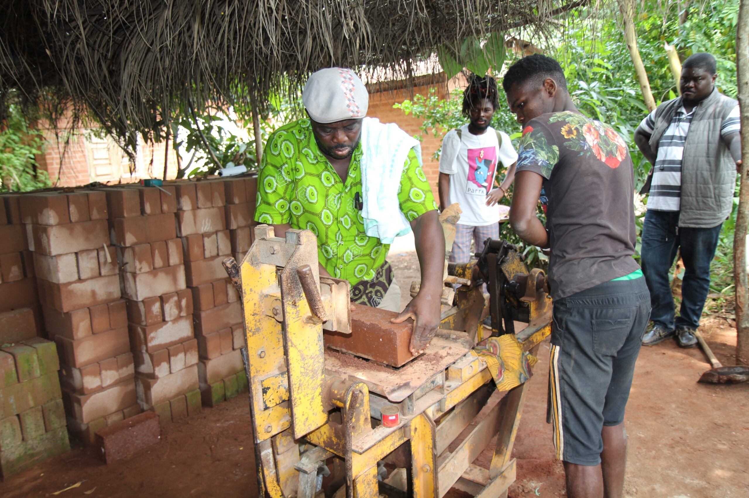 Und was auch noch geschah an diesem Tag: Uta und Valeria sind wieder nach Sichem gefahren. Am Vorabend haben Raphaël Adzamah und seine Jungs Erde an vier Stellen vom Boden neben dem Spital von Vogan geholt. In Sichem werden nun mit dem Oxara-Pulver und den vier Erdproben Backsteine gepresst.