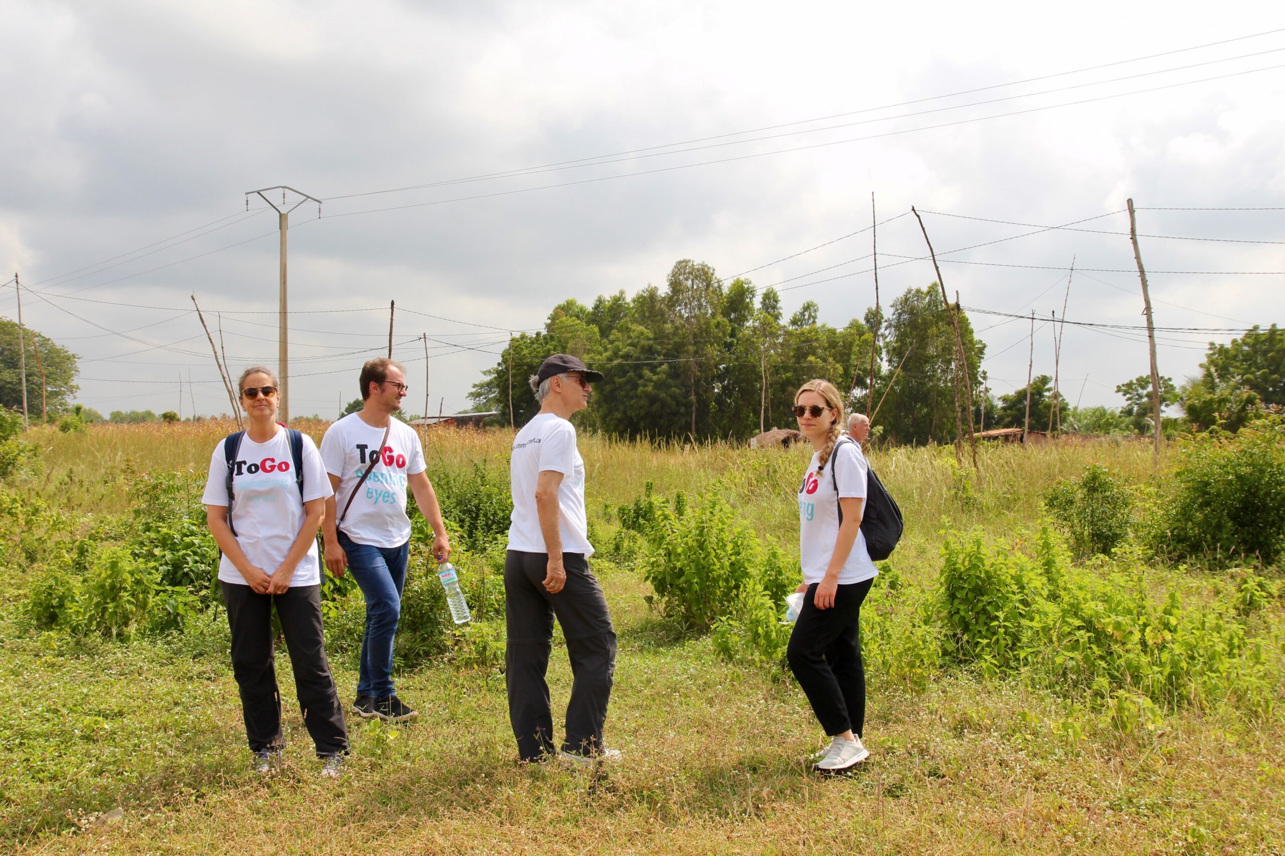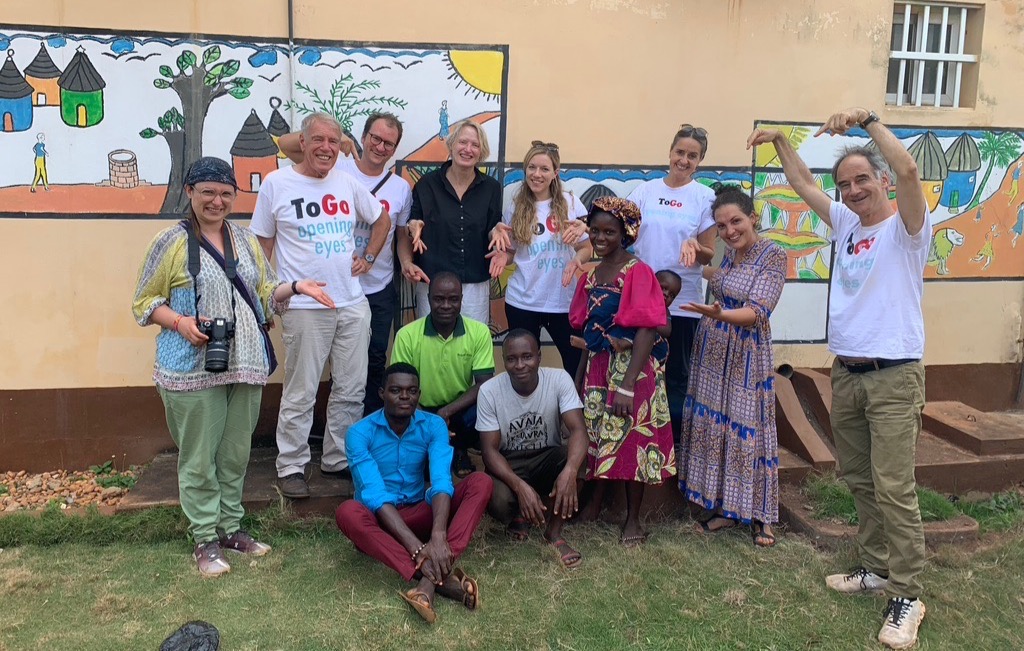Dann geht es weiter mit Uta, Valeria, Père Théo und Adegon, der uns vorausfährt. Und natürlich unserem Fahrer, der uns mit dem gesponserten Togo-Büschen von Nicole fährt. Wir fahren nach Lomé, in die Hauptstadt. Sehen das pompöse Regierungsgebäude. Die US-amerikanische Botschaft: Es gibt noch ein anderes Togo, ein herausgeputztes. Beim französischen Gymnasium steigen wir aus. Wir landen in einer Welt voll Kunst und Kultur, mit gepflegtem Rasen. Dann geht es weiter auf einen Hügel, wo Adegon gerade eine Verarbeitungsanlage für Gemüse baut. Das erste Mal für Uta und Valeria auf einer togolesischen Grossbaustelle! Nach diesem Tag hat Uta genügend Inspiration für die neue Augenklinik getankt. Sie sieht: Es ist möglich, hier zu bauen.