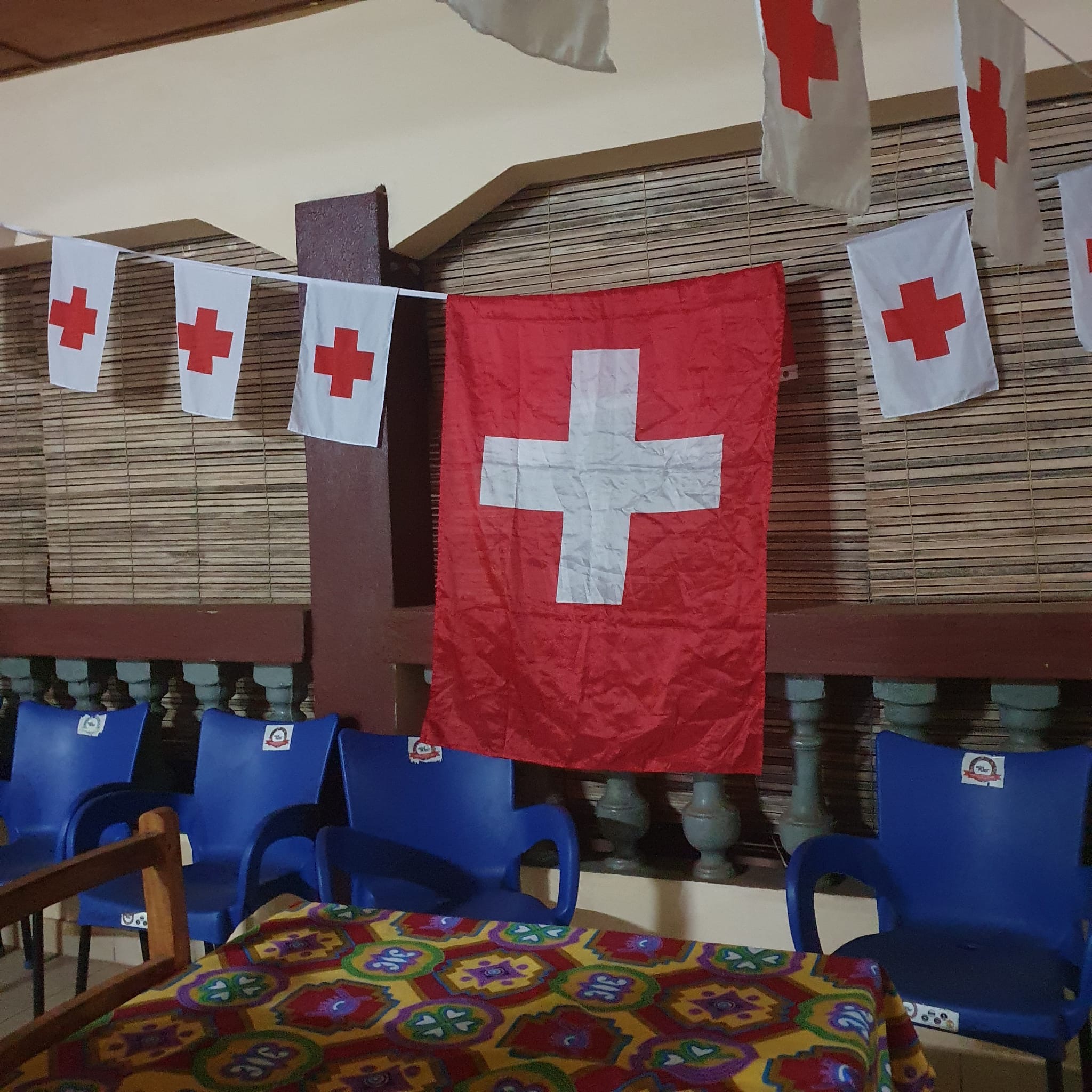 Um 13:00 wird dann in der Rot Kreuz-Unterkunft zu Mittag gegessen. Schon wieder gibt es hartgekochte Eier. Und rote Sauce mit Zwiebeln. Zur Freude aller gibt es mal Wassermelone statt Ananas zum Nachtisch.