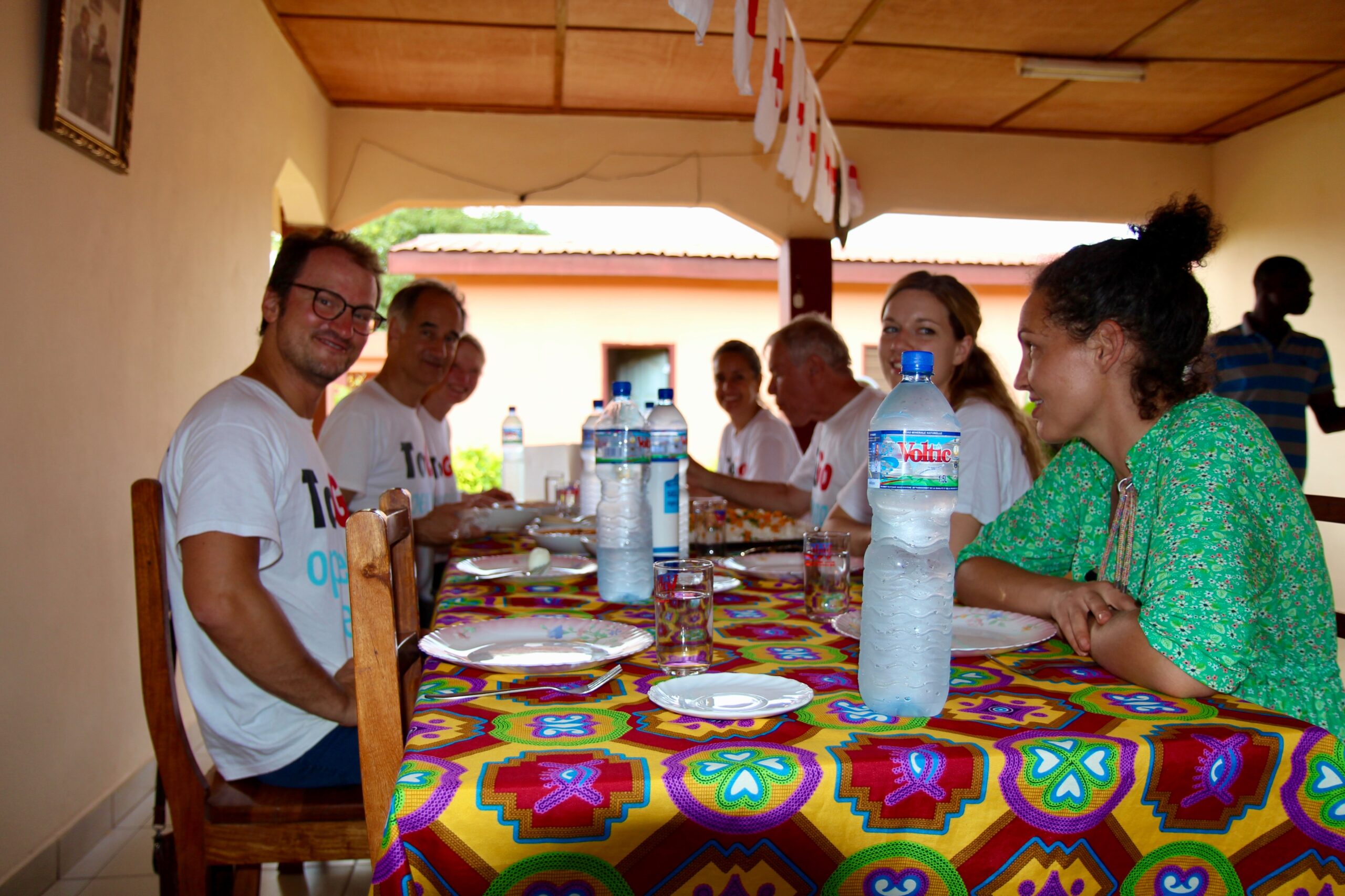 Der erste Tag, an dem wir um 6:00 frühstücken. Die Milch ist ausgegangen. Die nächsten importierten Tetrapackungen aus Frankreich befinden sich in der Hauptstadt Lomé, ca. eine Autostunde entfernt von der Rot Kreuz-Unterkunft. Die Erdnussbutter ist auch am Ausgehen. Und Peters heissgeliebte Konfi mit den Schwarzwälder Heidelbeeren, aber die können wir leider nicht ersetzen. Es hat, so lange es hat.