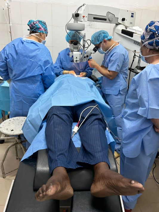 Schliesslich bis am Freitag weiter Operationen und wir erreichen schon die magische Zahl 50. Die Anzahl Operationen ist nicht primär wichtig. Besser ist es, ein Anstoss (une Impulsion) zu sein für das Projekt. Viele arme Patienten werden operiert, aber auch reichere Leute, um den Zugang zu den Armen zu ermöglichen. Der Präsident von Togo (Faure Gnassingbe) schickt persönlich einen Patienten zur Operation, was zeigt, dass in der obersten „Liga“ unsere Arbeit angekommen ist und geschätzt wird.