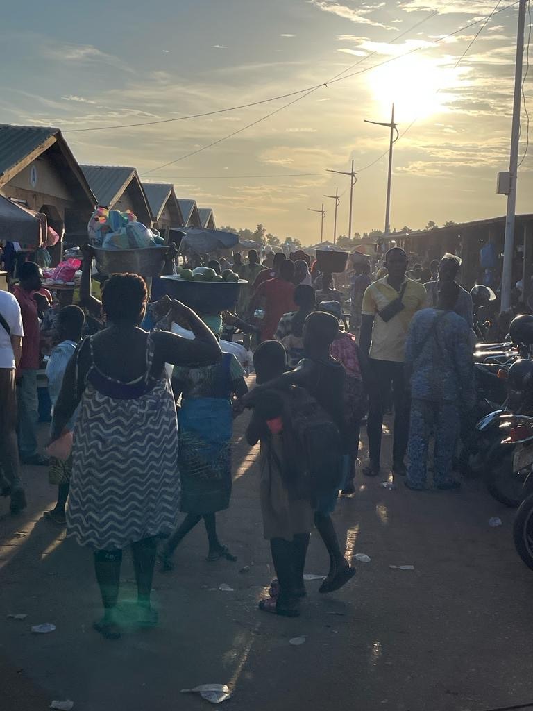 Gerade noch vor Sonnenuntergang schaffen wir es, dass wir einen Eindruck vom wöchentlichen Markt erhalten. In der Woodo sektion stinkt es bestialisch – nicht verwunderlich, wenn man all die Tierschädel, Knochen und Tiere in verschiedenen Stadien der Verwesung anschaut!