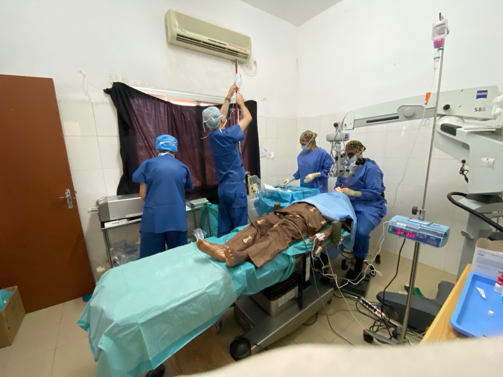 Das Schicksal schon fast herausfordernd, nehmen wir als 7. Patienten nochmals den alten Herrn von letzter Woche auf den Tisch zu nehmen um ihm am zweiten Auge eine neue Linse einzupflanzen.