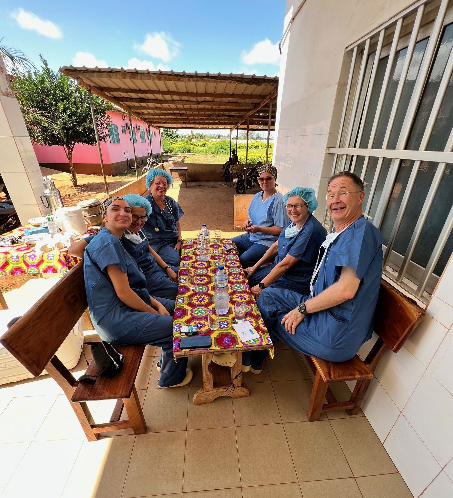 Tagwache mit Trompete! Trotzdem haben alle etwas Mühe mit aufstehen. Luxuriöses Morgenessen mit Nutella, Brioche, etwas trocken, Croissant , etwas verdrückt und richtige, französische Butter. Trotz verspätetem Abmarsch zum Spital sind wir so zügig unterwegs, dass schon fünf Minuten vor acht der erste Patient im OP-Saal behandelt werden kann.