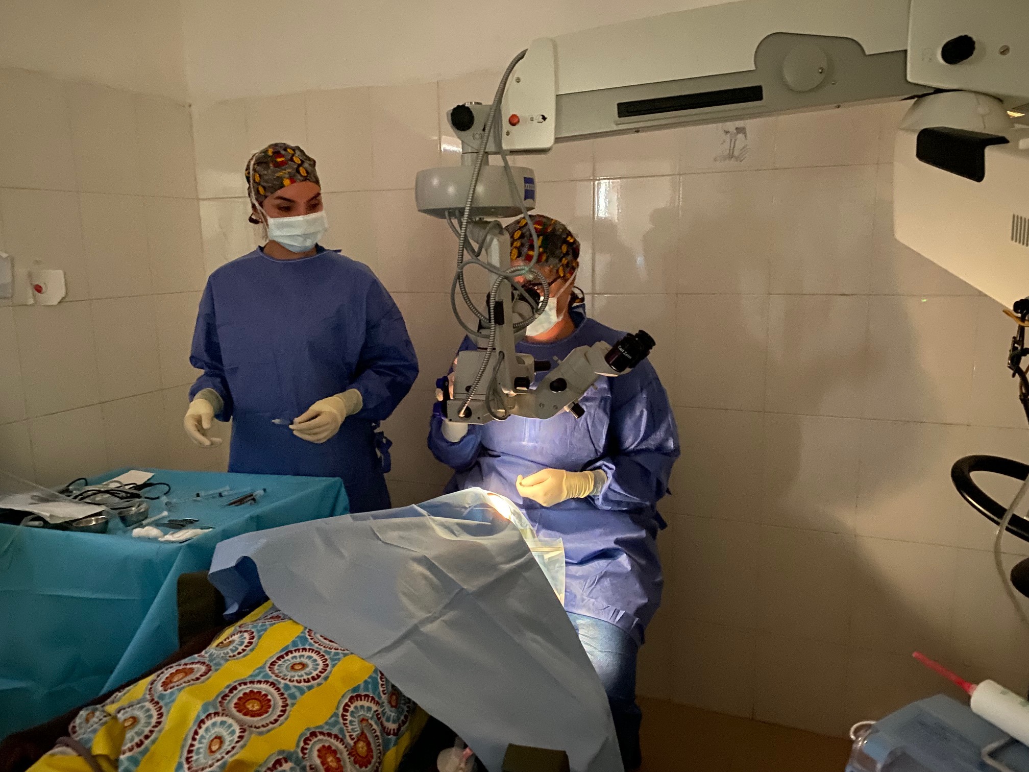 Natürlich kann nicht alles von Anfang an funktionieren. Das erste Phakogerät gibt immmer eine Fehlermeldung. Zum Glück hat es noch ein zweites Gerät, aber auch dieses will nicht, bis Jemand auf die glorreiche Idee kommt, auch das Pedal auszuwechseln. Seither funktioniert das Gerät einwandfrei. Bis um 18:00 haben wir 12 Patienten eine neue Linse eingepflanzt, die meisten erhalten einen Retrobulbärblock. Über die richtige Technik diskutieren Dominique und Mathis den ganzen Tag.